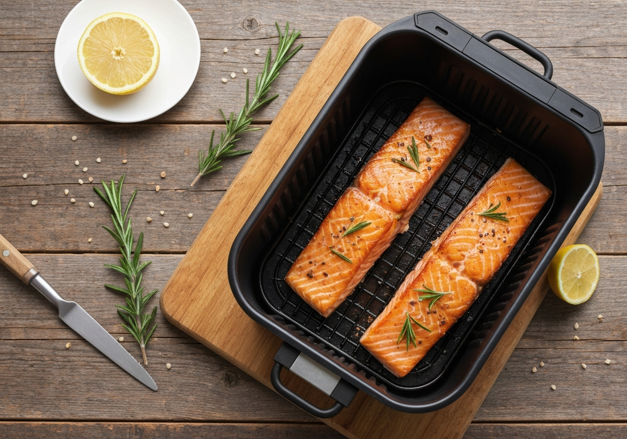 I'll be honest — for years, I was the person who ordered salmon at restaurants but never cooked it at home. It felt fussy. Pan-searing seemed to require some sort of restaurant-level sixth sense about when to flip, and baking it in the oven always felt like a gamble between "is it done yet?" and "oh no, it's a hockey puck." Then I tried the air fryer, and it was like someone turned on the easy button.